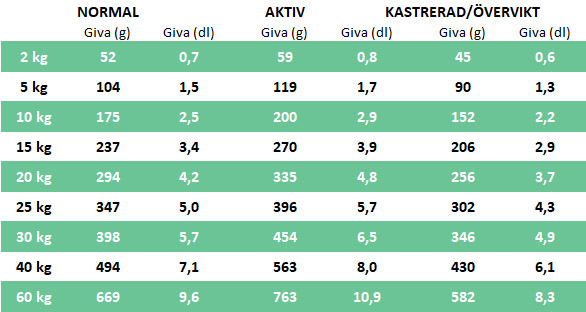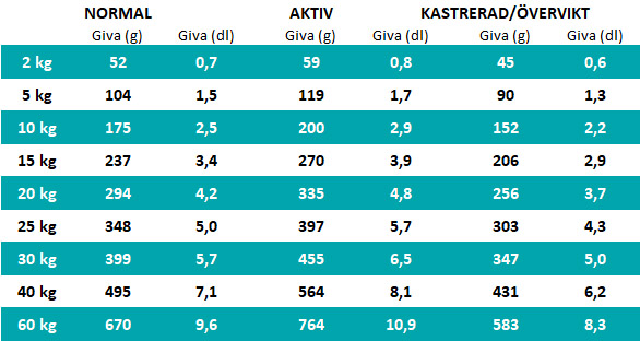 Analys: Protein 28,5%, fett 16,5%, aska 8% och fiber 2%