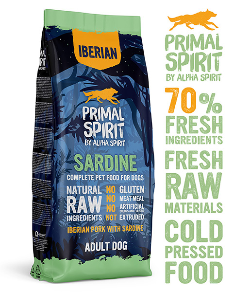 Ett komplett fullfoder för alla hundar genom hela livet av 100% färskt kött från Ibericogris och färsk sardin.
